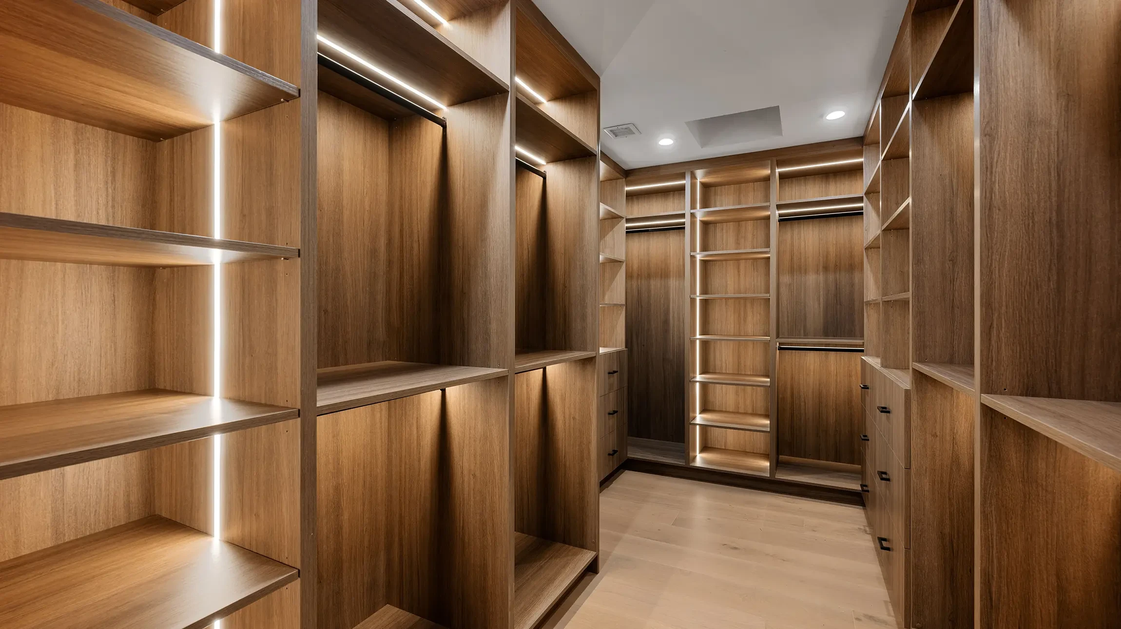 Créations complètes avec penderies, tiroirs et étagères dimensionnés exactement selon vos besoins et votre garde-robe.