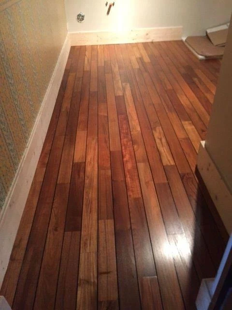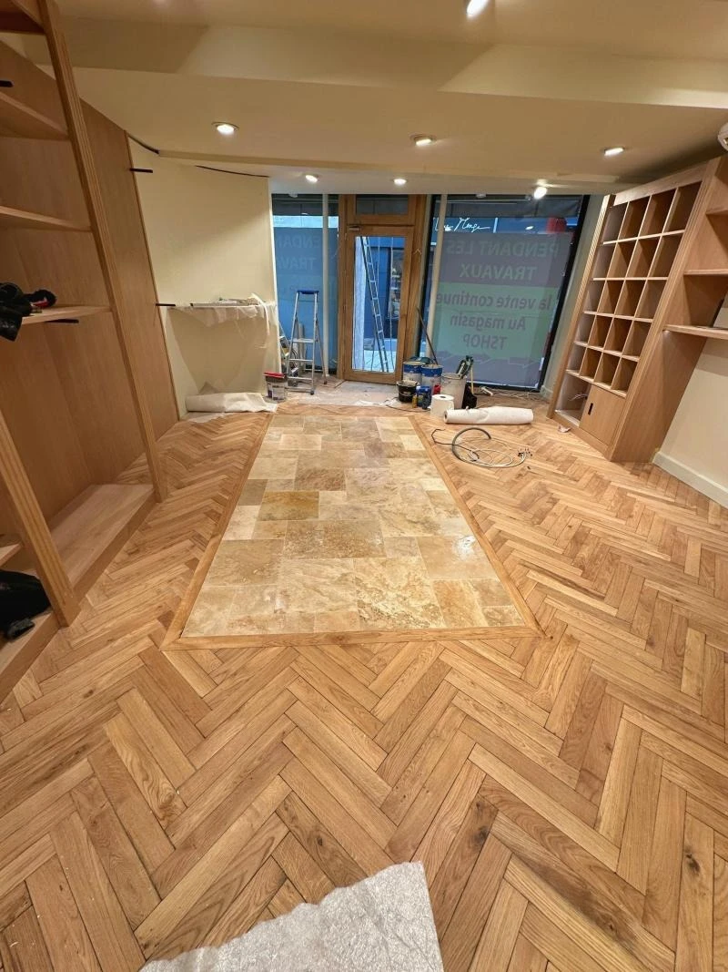 Nous maîtrisons toutes les poses traditionnelles et contemporaines : à l'anglaise (lames parallèles), en point de Hongrie, à bâtons rompus, en chevrons, ou en damier. La pose clouée sur lambourdes garantit durabilité et confort acoustique. La pose collée convient aux rénovations. Nos poseurs experts choisissent la technique adaptée à votre support et vos attentes esthétiques pour un résultat impeccable.