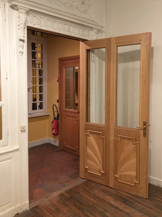 Nous fabriquons tous les styles : portes contemporaines à panneaux lisses, portes traditionnelles à moulures, portes vitrées avec petits ou grands carreaux, portes coulissantes gain de place, portes à galandage escamotables, ou portes rustiques bourguignonnes. Chaque modèle peut être personnalisé avec différentes essences, finitions (laquées, cirées, huilées) et quincailleries. Notre expertise permet de créer des portes qui reflètent votre personnalité.